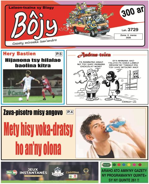 Bojy 06 marsa 2026 Written by Adnews on 6 mars 2026 More in Bojy: 05 marsa 2026 5 mars 2026 04 marsa 2026 4 mars 2026 03 Marsa 2026 3 mars 2026 Partager sur: